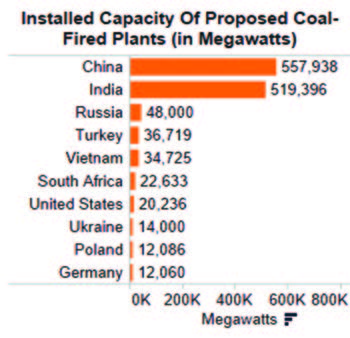 A total of 1,199 new coal-based thermal power plants with a total installed capacity of more than 1.4 million MW proposed worldwide, the lion’s share – 455 plants – are in India, according to data from the World Resources Institute.