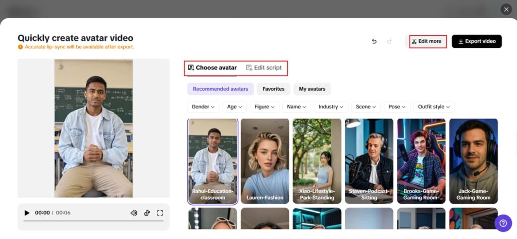 After syncing, select Edit more to fine-tune the finished video. Adjust time, pacing, or expressions for better engagement.