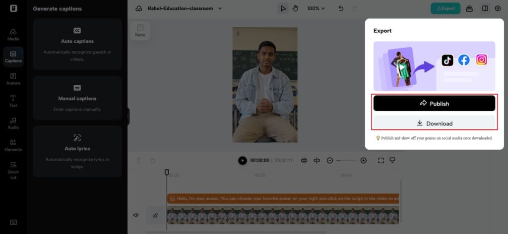Take advantage of the Publisher option by sharing directly to TikTok, Instagram, or Facebook, or scheduling posts for a future date. Or upload to educational software or classroom applications. Then analyze the Analytics area for feedback on how well you engage your audience and learn how to make better lessons.