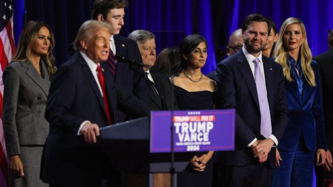 “This is a magnificent victory for the American people. This was a movement like nobody’s ever seen before… this was, I believe, the greatest political movement of all time,” Trump said. “And now it’s going to reach a new level of importance because we’re going to help our country heal… we have a country that needs help, and it needs help very badly,” he said. Soon after projections indicated Trump’s victory, congratulatory messages started pouring in from world leaders, including Prime Minister Narendra Modi, Israeli Prime Minister Benjamin Netanyahu, British Prime Minister Keir Starmer and French President Emmanuel Macron, for his “historic return to the White House”.