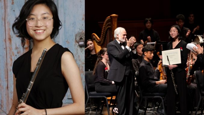 Li’s flute instructor Laura George said, “Karri Li’s profound love of the flute has inspired her to practice four hours daily to thoroughly prepare for her many concerts, recitals, and master classes. Her unwavering devotion, dedication, and drive to excel are inspiring to my other students. Her lustrous, nuanced tone and inspired interpretations invite the listeners to join her on her musical journey. It has been my great joy and privilege to teach and mentor such a deserving, stellar student as she pursues her studies in her chosen profession of music.”