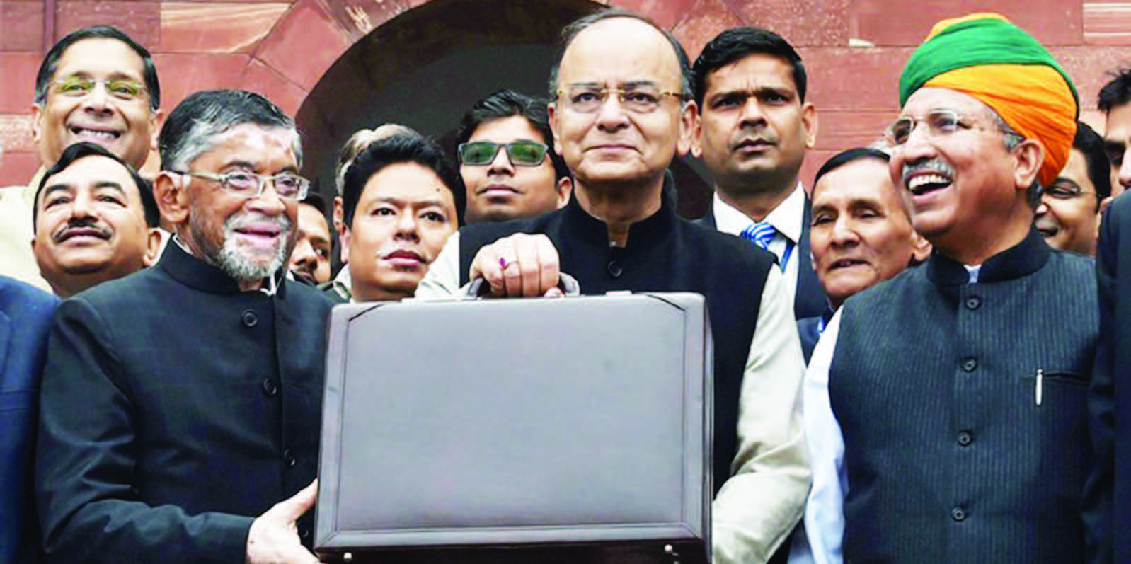Finance Minister Arun Jaitley holding a briefcase of budget papers