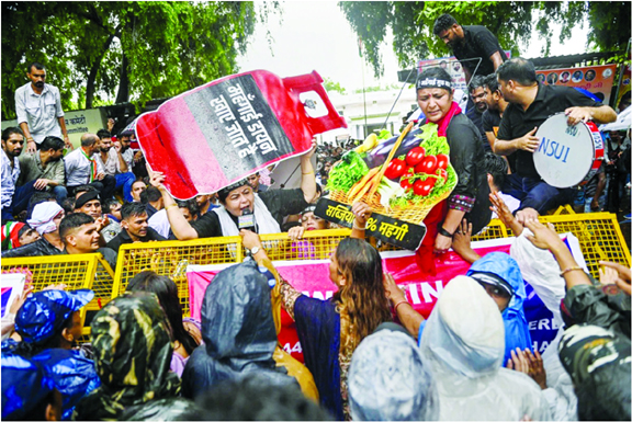 The protesting MPs raised slogans against the government demanding that the GST hike on essential items be withdrawn, with party chief Sonia Gandhi standing with the women MPs of the party holding a banner outside Parliament gate. In Assam, the Congress attempted to gherao the Raj Bhavan at Guwahati as they held demonstration on Friday. In Madhya Pradesh, the protesters tried to march to the Raj Bhawan to hand over a memorandum of demands to the Governor, but were stopped by the police.