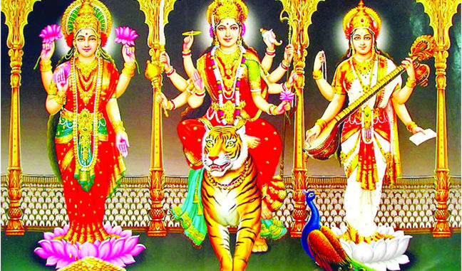 Tridevi, or three goddesses, is a term used in Hinduism to describe the three main female deities. These are Saraswati (who is linked to Brahma), Lakshmi (who is linked to Vishnu) and Parvati (who is linked to Shiva).