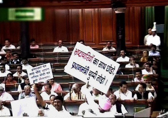 Since the monsoon session began on July 21, little business has been conducted as an aggressive Congress-led opposition disrupted both Houses demanding the removal of foreign minister Sushma Swaraj and Rajasnthan chief minister Vasundhara Raje over allegedly helping Modi and Madhya Pradesh CM Shivraj Singh Chouhan over the multi-crore Vyapam recruitment and admissions scandal.