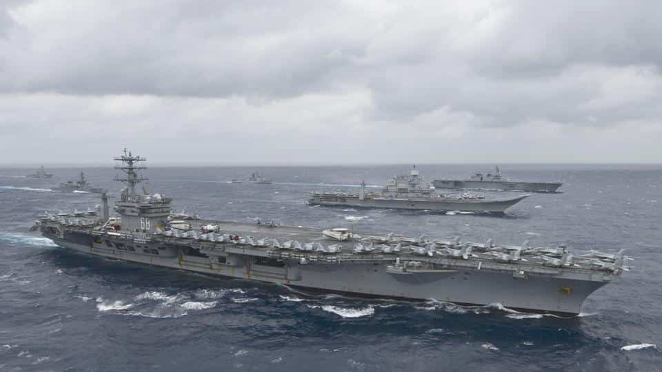 The two carrier groups, with MiG-29K fighters on board Vikramaditya and F-18 fighters on board Nimitz, will participate in war games, while the involvement of the two other countries, which are, like India and the US, members of the Quad grouping, will strengthen multi-operability in full domain exercises. It is also expected to help all four countries understand the ethos and level of training of each other’s navies, commanders and personnel. The exercise will take place in quite a congested environment with at least 70 foreign warships patrolling the area between the Persian Gulf and Arabian Sea. The People’s Liberation Army (PLA) Navy’s warships are not in the vicinity but are not too far off either – ostensibly conducting anti-pirate operations off the Gulf of Aden.