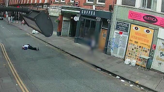 The victim was left unconscious in the middle of the road, before being taken to hospital where he has since remained. Detective Inspector Mark Astbury, of Longsight CID, said: “We took the decision to release the CCTV footage with the family’s permission, simply to show the severity and mindlessness of this attack and why we need to make sure the offender is found and faces the consequences of his appalling actions”.
