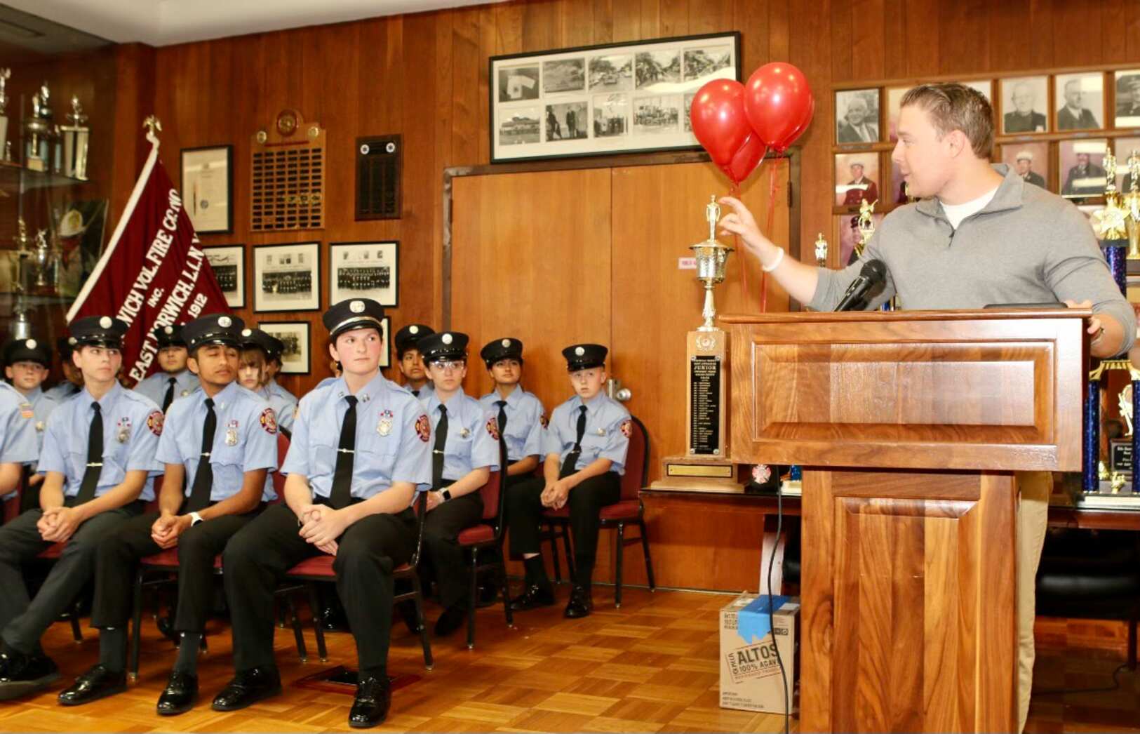 EAST NORWICH, N.Y. (TIP): Nassau County Legislator Joshua Lafazan (D – Woodbury) recently honored the 19 members and eight advisors of East Norwich Volunteer Fire Company No. 1’s Junior Firefighters for their accomplishments in community service.