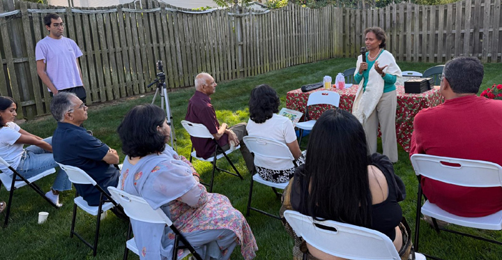 EDISON, NJ (TIP) : ALotusInTheMud.com organized an interaction here on September 20 with Sarada Chiruvolu, author of ‘Home At Last’, a spiritual memoir. About 30 people listened intently as she shared her self-realization experience, clearing their doubts about the challenges and signposts of spiritual progress.