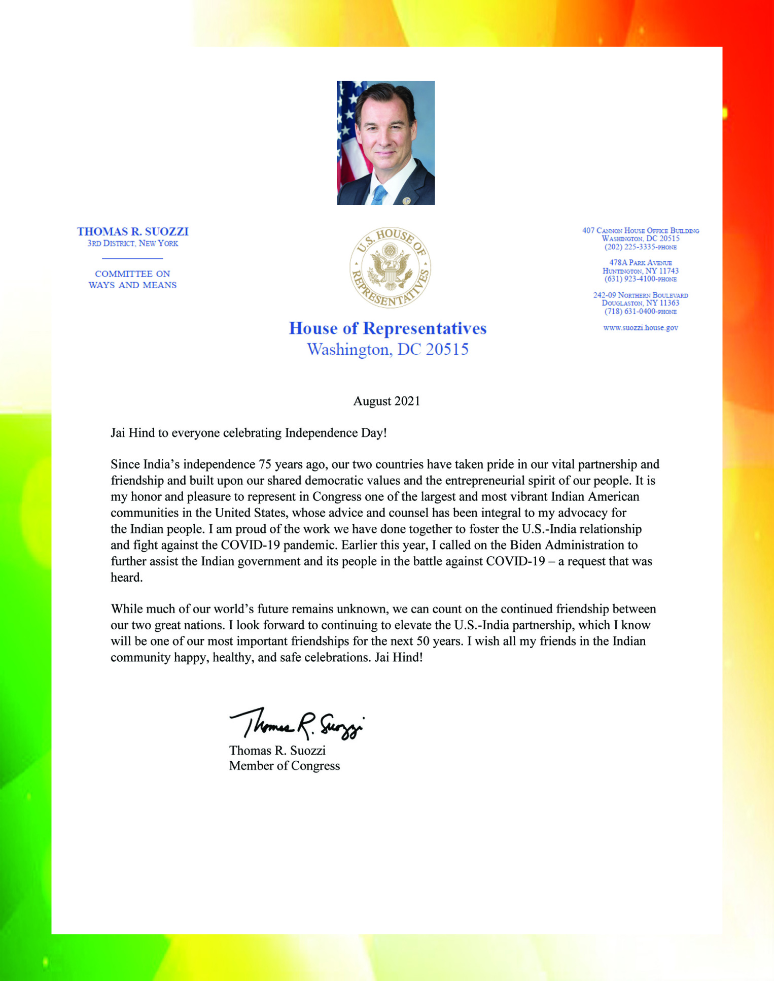 Message From Thomas R. Suozzi