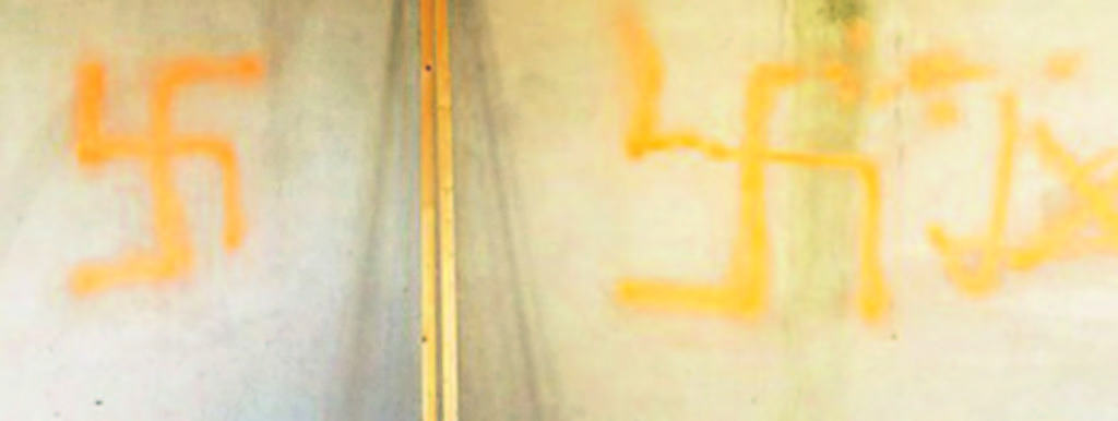 The first questionthat must come to every one’s mind is what kind of a Swastika was drawn outside Peter Jacob‘s house? Was it really an exact replica of Nazirotated Swastika drawn with black in a white circle within a red square?If not, why a media frenzy was created that can very well create unrest among the peace loving,well educated,very religious Hindu community especially their young children, to create a permanent fear in their minds about their own religious symbol that represents faith and auspiciousness.