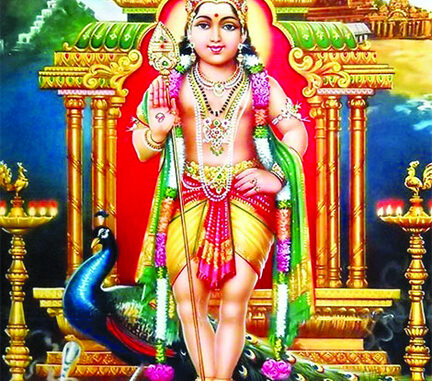 Lord Murugan is often depicted as an ever-youthful man carrying a Vel in his right hand. Some images show him with six faces with his two wives sitting on his two laps. Sometimes he is riding a peacock and sometimes is standing. He wears some golden ornaments and a yellow pitambara (a cloth). Verse 5.2.1 in the Rig Veda talks about Kumara, whose characteristics match that of Lord Kartikeya. Therefore, some scholars believe that this verse is the origin of Lord Murugan’s worship.