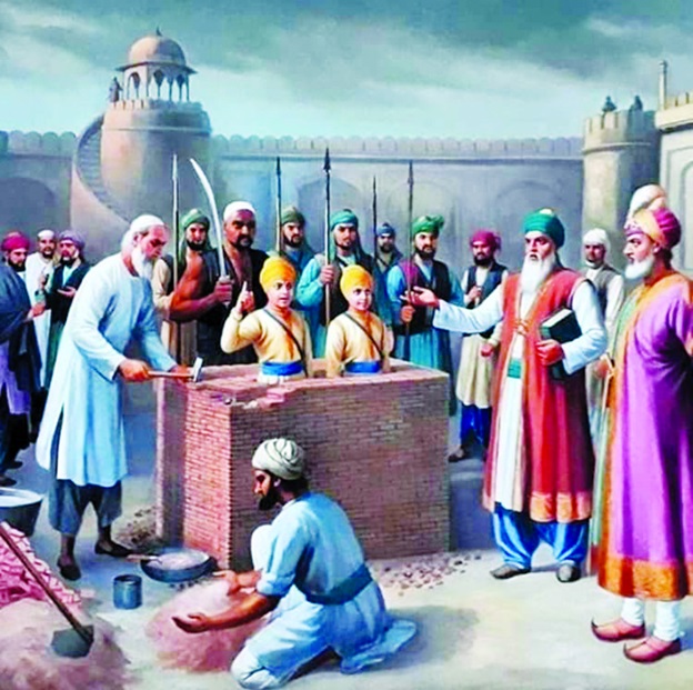 As bricks were laid around their small bodies, Sikh tradition recounts that the wall collapsed repeatedly, as though refusing to stand upon injustice. Ultimately, when the wall could not be completed, the executioners beheaded the children.