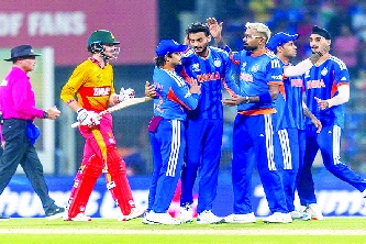 Chennai (TIP): Abhishek Sharma rediscovered his form with a blazing fifty, Hardik Pandya bludgeoned a half-century and Tilak Varma allayed strike-rate worries in India’s 72-run victory over Zimbabwe, keeping them alive in the race to the T20 World Cup semifinals on Thursday, Feb 26.