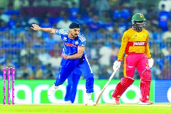 Put to bat first by Zimbabwe, India amassed their highest T20 WC total on the board courtesy knocks from Abhishek Sharma (55 in 30 balls, with four boundaries and four sixes), Hardik Pandya (50* in 23 balls, with two fours and four sixes) and Tilak Varma (44* in 16 balls, with three fours and four sixes).