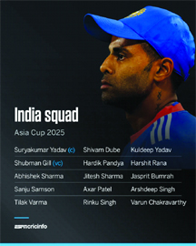 Gill was vice-captain in the previous T20I series he had played – in Sri Lanka in July 2024 – but he had not been picked in any of the subsequent series as India prioritised his appearances in the Test and ODI formats. Axar was then appointed vice-captain for the home T20Is against England in January. Gill’s return to the T20I format comes on the back of his contributions to India’s Champions Trophy triumph earlier this year and his record-breaking run as batter in the five-Test series in England, where he led India to a 2-2 draw in the Anderson-Tendulkar Trophy. He also scored 650 runs for Gujarat Titans in IPL 2025 at a strike rate of 155.87. “Last time when he [Gill] played T20 for India, post T20 World Cup when we went to Sri Lanka – not Zimbabwe – when I was leading, he was the vice-captain,” Suryakumar said after the selection meeting in Mumbai. “So that’s where we started a new cycle. After that, he got busy with all the Test series, and he didn’t get an opportunity to play T20s because he was busy playing Test cricket and Champions Trophy. So he’s there in the squad, and we’re happy to have him.”