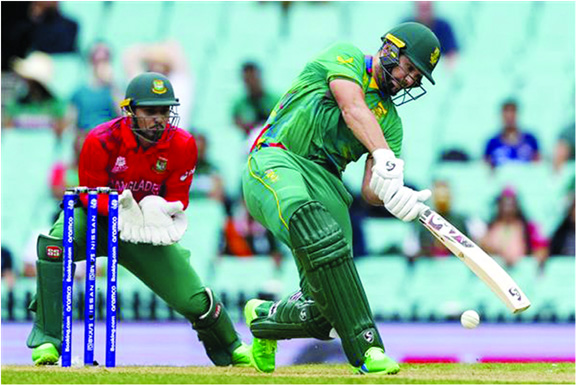 In Sydney, Rilee Rossouw scored the first century of the edition and built a partnership of 163 with Quinton de Kock to drive South Africa to a thumping 104-run victory over Bangladesh. Muscular lefthander Rossouw pummelled eight sixes and seven fours for his 109, while de Kock pitched in with 63 runs as the Proteas dodged the rain to rack up an imposing tally of 205/5.
