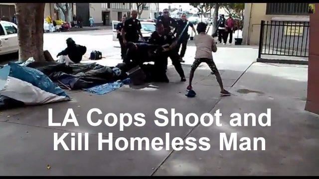 A homeless man has been shot dead in the street by Los Angeles Police Department (LAPD) officers, sparking protests.