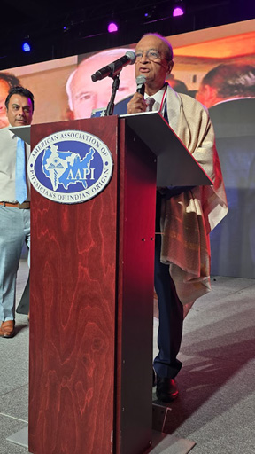CINCINNATI (TIP): Dr. Bharat Barai, a distinguished Indian American physician and community leader, was honored with the first ever Dr. Sampat Shivangi Legacy Award for his leadership, contributions to the society and close association with Dr. Shivangi, during the 43rd annual American Association of Physicians of Indian Origin (AAPI) Convention in Cincinnati on July 26, 2025.