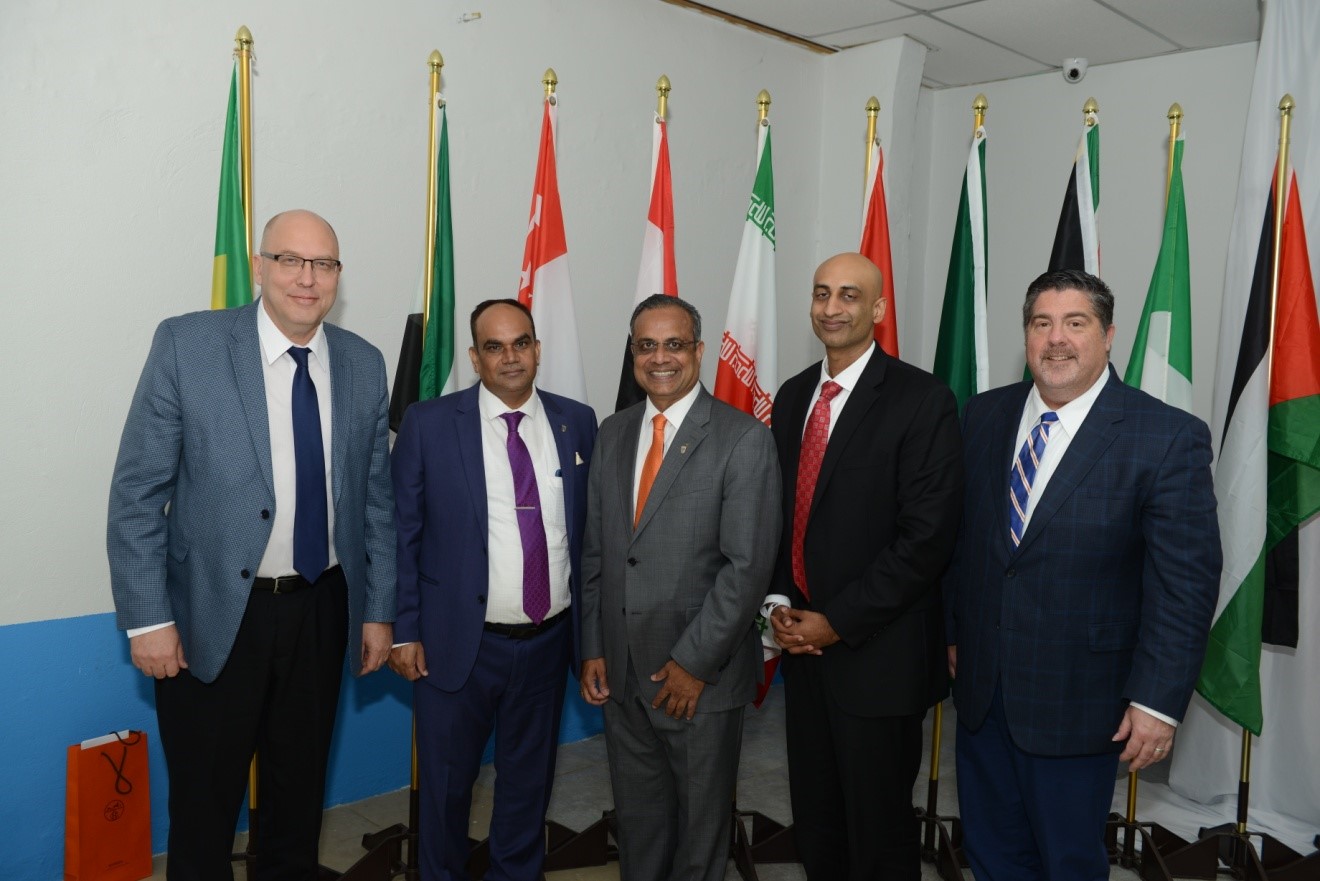 Ravishankar Bhooplapur, President, Edwin Case, Chairman, Dr. JG Bhat, Chancellor, Trustees Dr. Ravindra Kota, Dr. PK Prahalad, Dr. Anthony Shallash,, Frank Croes, Dr. Arun Dubey, Acting Chief Academic Officer, Dr. Burton Herz, Associate Provost, Dr. Joseph Balsamo, Dean of Clinical Science, Dr. Richard Pomerantz, Director of Medical Education – Baltimore Dr. Lakshmi Dodda, Director of Medical Education – Chicago’ Dr. Paul Liu, Chair of OBGYN, Dr. Madhu Rangraj, Chair of Surgery, Dr. Sanjivan Patel, Chair of Pediatrics, Dr. Parvez Mir, Chair of Internal Medicine, Dr. Cheryl Carrao, Chair of Family Medicine, Dr. Ramesh Naik, Faculty – Internal Medicine, Dr. Rachel Karmally, Alumni Chair – Class of 2012, Senior Staff Physician and professor at Henry Ford Hospital, Dr. Abdulrahman Aboud, Alumni – Class of 2016, Family Medicine Resident at Michigan State University Hospital, Dr. Lee Berman, Alumni – Class of 2011,Chief Psychiatry Resident at Delaware Psychiatry Center, Dr. Hassan Al-Khalisy, Class of 2013, Fellowship in Pulmonary & Critical Care Medicine at Upstate Medical University – SUNY, Dr. John Samaan, Alumni – Class of 2010, Psychiatry Resident at Larkin Community Hospital, FL, Dr. Amanda Wolf, Class of 2015, Family Medicine at East Peirce (affiliated with MultiCare Good Samaritan Hospital, WA), Dr. Adrienne Hicks, Alumni – Class of 2007, Psychiatry Resident at Harlem Hospital, NY, Dr. Sumeet Singh, Alumni – Class of 2013, Psychiatry Resident at Saint Elizabeth’s Hospital, Washington DC, and Dr. Asaad Wahid, Alumni – Class of 2015 were among the attendees.