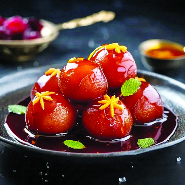 – Add the fried jamuns to the warm syrup.